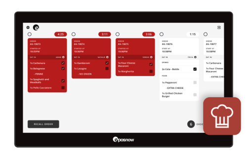 Take the reciept printer out of the kitchen with a sleek, easy-to-use Kitchen Display, keep track of what’s been sent, what’s on hold, live changes to orders and more - all on one screen.